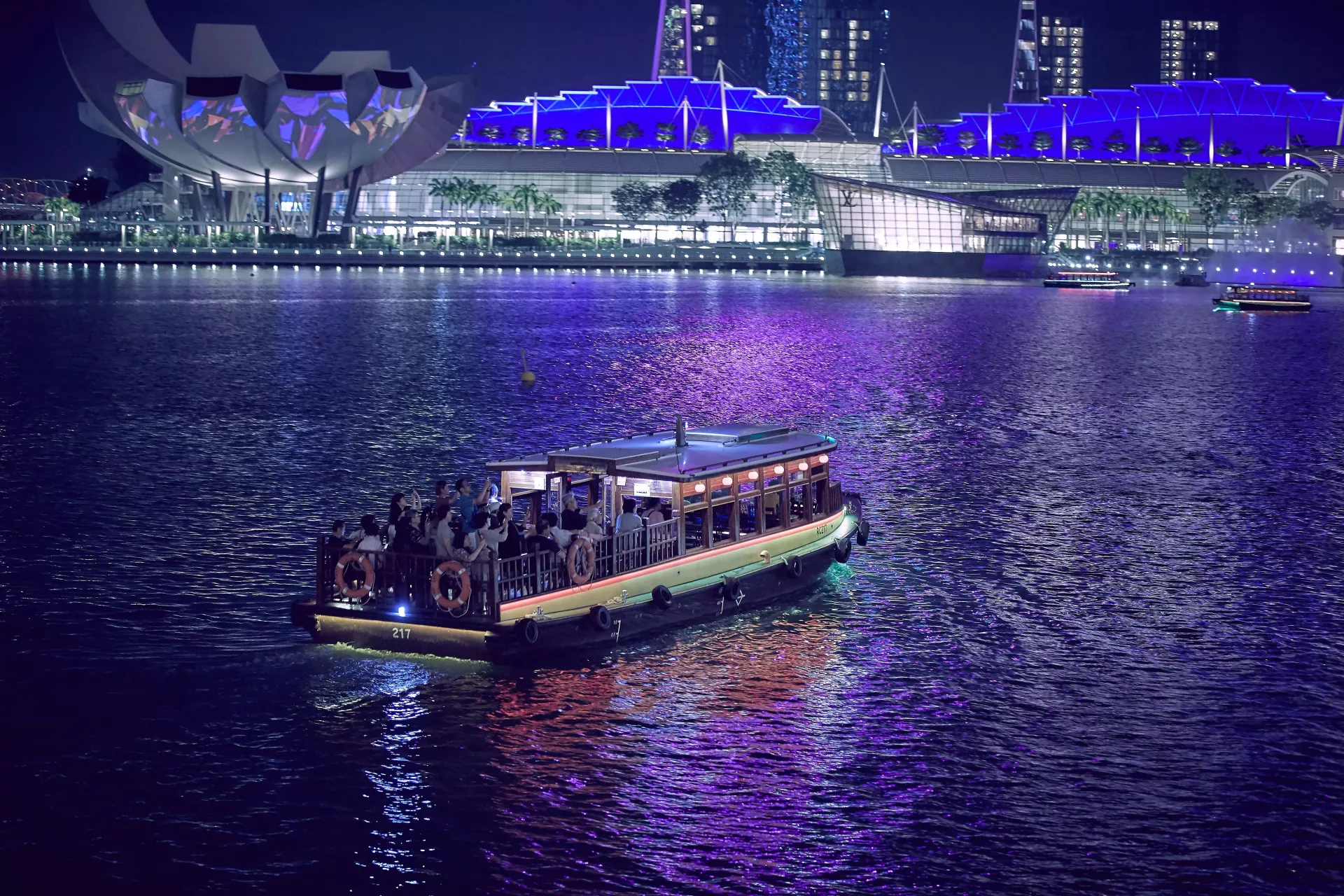 Для тех, кто хочет ощутить атмосферу трансформирующегося вечернего города в ночную сказку, когда Сингапур ещё более разнообразен и каждый его район наделён особыми ароматами, подсветками, формируя неповторимый эстамп! Поездка начинается с эклектичного района Кларки у реки, по которой на круизной лодке вы прокатитесь до залива Марина Бэй, посмотрите знаменитое шоу, и прогуляетесь по мосту ДНК!